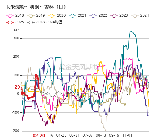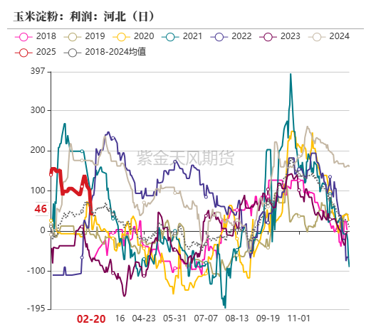 截止2月21日当周,吉林玉米淀粉深加工利润为29元/吨,较上周下降69元/吨,山东玉米淀粉深加工利润为10元/吨,较上周下降38元/吨;黑龙江玉米淀粉深加工利润为75元/吨,较上周下降15元/吨。河北玉米淀粉深加工利润为46元/吨,环比下降76元/吨。