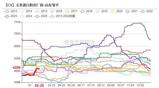 截止2月21日当周,玉米淀粉价格2797元/吨,环比持平;玉米胚芽粕价格1510元/吨,环比+140;玉米蛋白粉价格4200元/吨,环比持平;玉米麸皮价格820元/吨,环比+20。