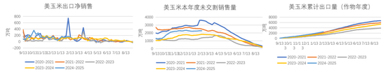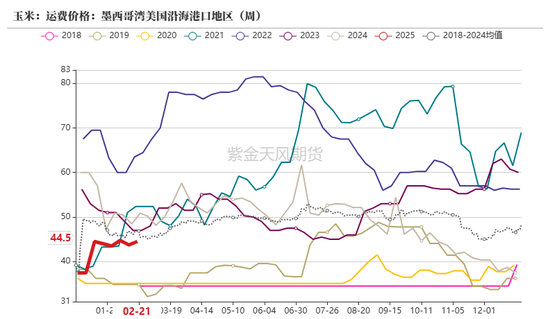 2月21日当周,美国2024/2025年度玉米出口净销售为145.4万吨,前一周为164.9万吨,环比减少19.5万吨;美玉米出口量总量2524.6万吨,未交割销售量2262.4万吨。
