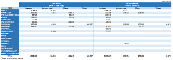据巴西Anec最新预估,2月16日-2月22日期间,巴西玉米出口量为29.32万吨,上周为42.42万吨,环比减少13.1万吨。