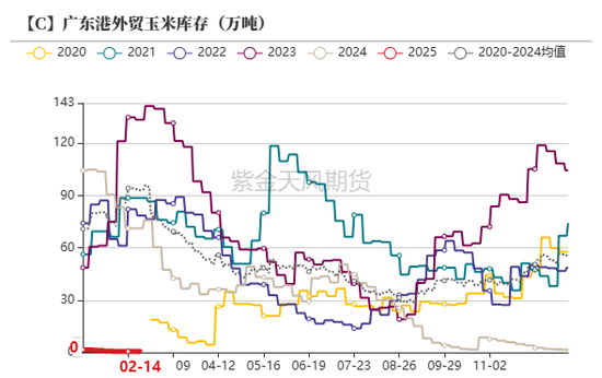 截至2月21日当周,广东港内外贸玉米库存共计147万吨,环比上周150.8万吨,减少3.8万吨。其中,广东港内贸玉米库存共计146.7万吨,较上周减少3.5万吨;外贸库存0万吨,较上周减少0.6万吨。